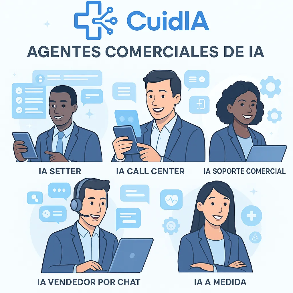 Nuestros Agentes Comerciales IA atienden WhatsApp y llamadas de forma inmediata, agendan citas, confirman turnos y responden preguntas frecuentes 24/7. Menos ausencias, más pacientes confirmados, sin sobrecargar a tu equipo.